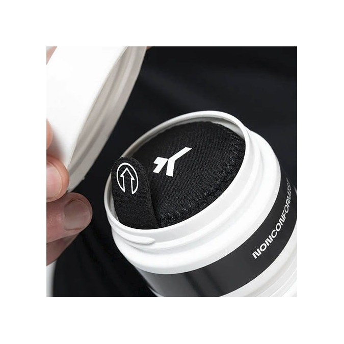 Té un disseny estàndard amb diàmetre de 74 mm i és compatible amb la majoria de suports d'ampolles del mercat.
