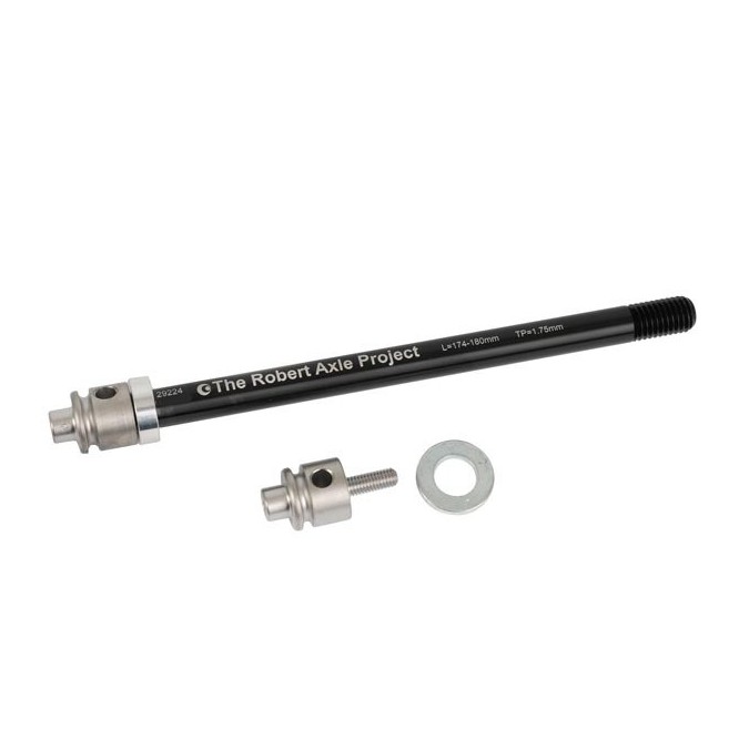 Eix passant per a M12x142, pas de rosca: 1,75 mm / longitud de l'eix: 174 - 180 mm. Referència fabricant Robert Axle Project: BOB111. Aquest eix especial de Robert Axle Project connecta hàbilment els remolcs de bicicleta BOB amb bicicletes que depenen d'un eix passant de 12 mm a la part posterior. Més fort i segur: mai no has estat tan còmode a la carretera amb un BOB! Apte per a remolcs de bicicleta BOB YAK i IBEX.