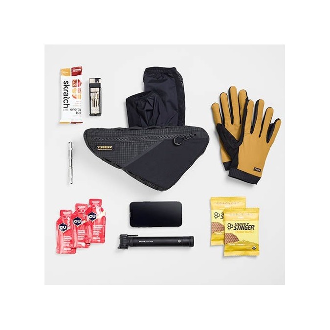 Con un perfil bajo que se integra fácilmente en tu cuadro, la bolsa triangular Trek Adventure es imprescindible para los cuadros de bicicleta más pequeños y los ciclistas de gran fondo.