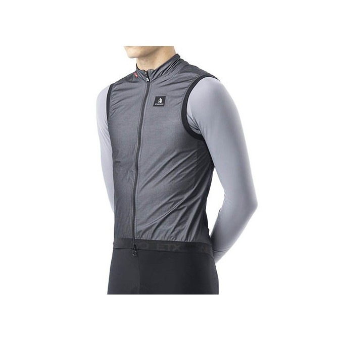 El patrón se diseña priorizando la protección y el mínimo volumen, la parte frontal del chaleco se confecciona con paneles de tejido Gore-Tex Infinium Windstopper para ofrecer una protección total frente al viento, mientras que en la parte trasera se utilizan paneles de rejilla Microsystem Air Plus que ayudan a eliminar el exceso de humedad y aumentan la transpiración. El resultado es un chaleco ultraligero de tan solo 109 gramos de peso, con una protección total frente al viento y que una vez plegado su volumen es tan reducido que cabe en la palma de la mano.