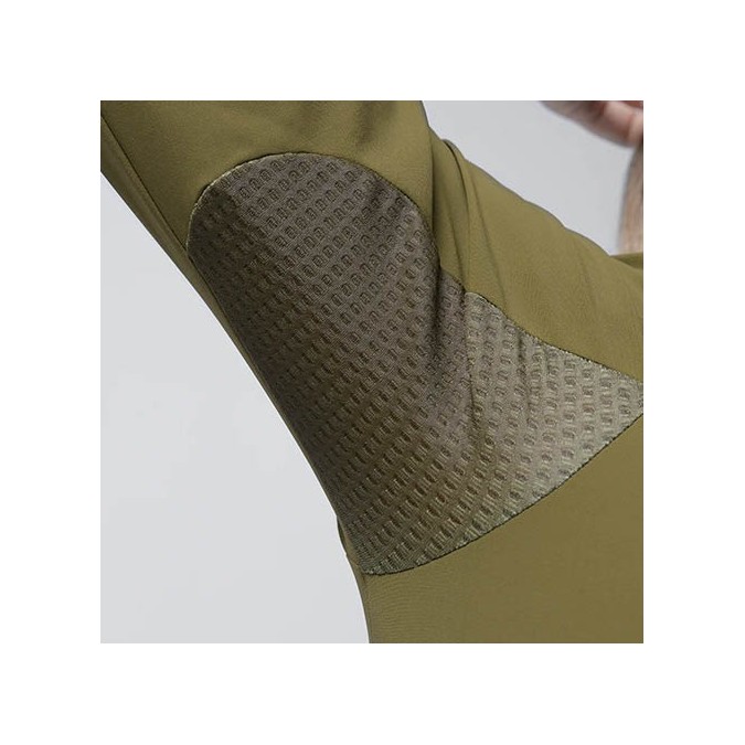 El ajuste regular permite combinarla tanto con maillots ligeros como con prendas más gruesas de entretiempo. Su construcción impermeable y el tratamiento repelente al agua en el exterior aseguran una eficaz barrera contra las inclemencias, mientras que las zonas de ventilación bajo las axilas facilitan la transpiración durante el esfuerzo.