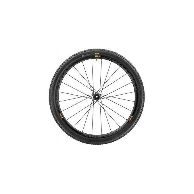 Llantas: Usar con fondo de llanta Mavic Tubeless Tape Llanta sin pestañas interiores (hookless) Medida ETRTO 29": 622x23ss Anchura interior: 23 mm Material: 100% fibra de carbono unidireccional Taladros: tradicionales Diámetro del orificio para la válvula: 6,5 mm Neumático: UST Tubeless y con cámara