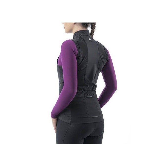 Le gilet est doté d'une fermeture éclair à double curseur permettant de l'ouvrir par le haut ou par le bas pendant la sortie, ce qui favorise la liberté de mouvement dans les montées, régule la température intérieure et facilite l'accès aux poches de la veste ou du maillot. Pour améliorer la visibilité du cycliste, avec l'arrivée des journées plus courtes et de la baisse du soleil, une bande réfléchissante a été ajoutée au dos, là où elle est la plus visible.