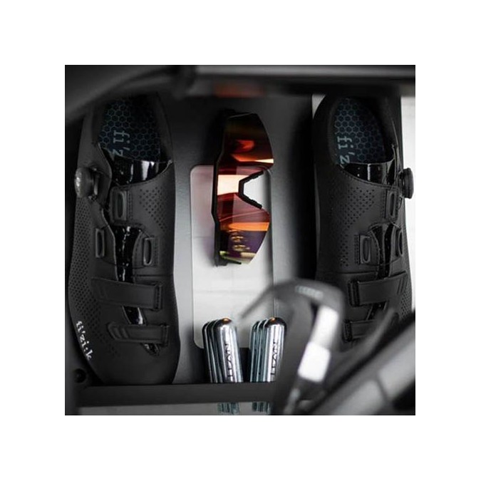 - Rangement : Casque, chaussures, lunettes, cartouche de CO2 et votre vélo