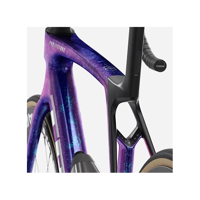 • Fourche : Madone Gen 8 monobloc en carbone, pivot en carbone à épaisseur variable, passage de câbles de freins interne, freins à disque Flat Mount, axe traversant biseauté 12 x 100 mm mm