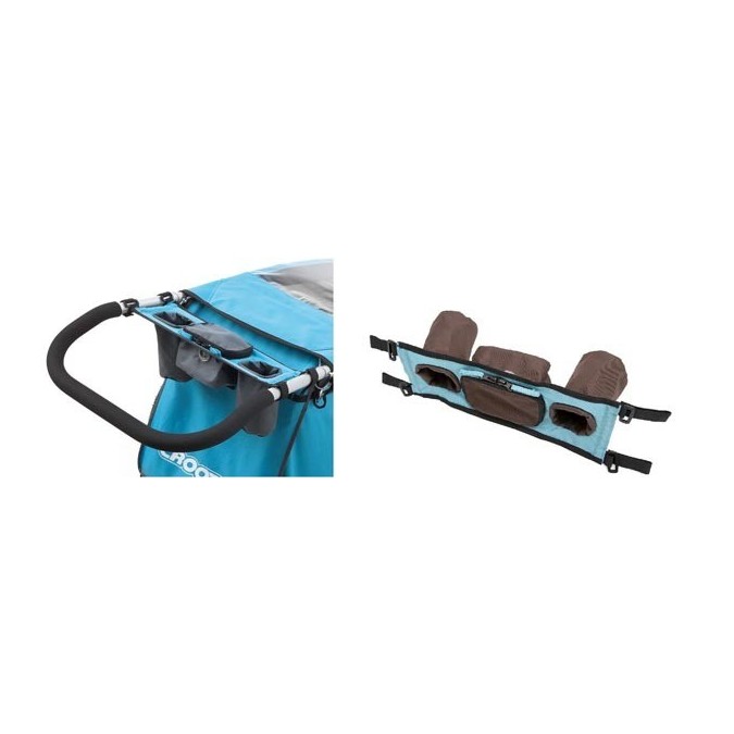 Croozer water bottle holder bag, sky blue, compatible with Croozer Kid for 1. Croozer product code: 122001714. To ensure that nothing gets lost and everything stays safe and secure during your trip with your Croozer trailer, this water bottle holder bag is designed to keep everything organized. It not only organizes your essentials, but also expands the storage space in your trailer.