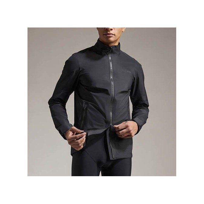 A waterproof and windproof jacket with a cut that adapts to any cycling style and type of bike, and can even be worn off-road.