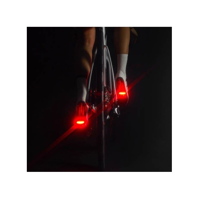 Several studies demonstrate that this pedal lighting system provides greater safety on the road. In fact, a US study revealed that lights positioned on cyclists' heels make them 5.5 times more visible than a fixed light mounted on the seat post. The reason: a moving light attracts our attention more than a static one. Safety starts with being visible. Its 60-lumen LEDs are visible, even during the day, from up to a kilometer away. It's proven that drivers react faster to red lights, even in bright sunlight, ensuring safer riding. Integrating the lights into the pedals also provides 180º of visibility, meaning you're visible from a wider angle wherever you ride. 4 light modes The night flash has a power of 10 lumens and a battery life of 40 hours, while the day flash has 60 lumens and a battery life of 10.5 hours. It has two fixed light options: the first is for low-light conditions, with 2 lumens and a 10-hour battery life; and the second, for nighttime, has 3 lumens and a 5-hour battery life. They fully charge in 2 hours with the included dual-connection USB-C cable—for connecting both lights simultaneously. It has an energy-saving mode—both lights turn off—if they stop detecting movement for 30 seconds. They turn off completely after 30 minutes of inactivity.